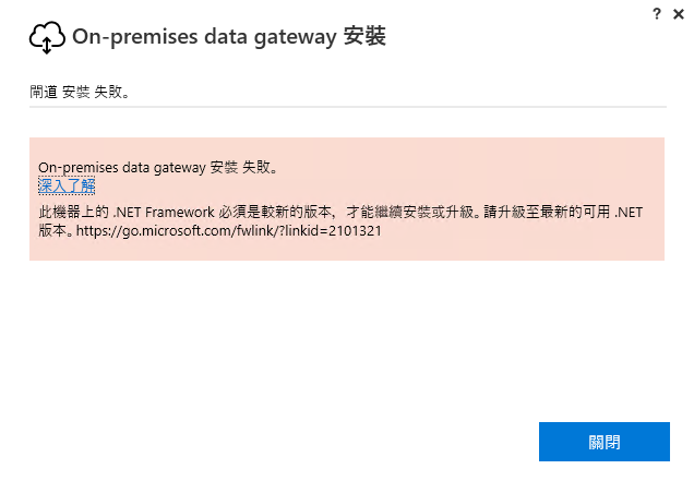 閱讀全文〈Power BI on-premises Data Gateway安裝時顯示.NET framework過舊無法安裝〉
